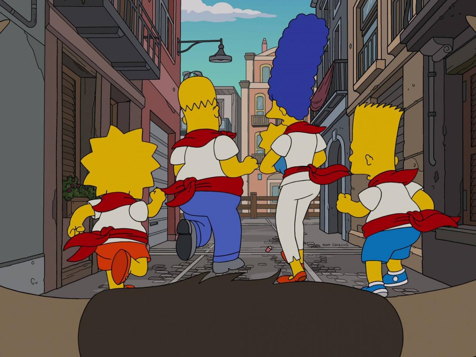 Wallpaper The Simpsons escape from a bull