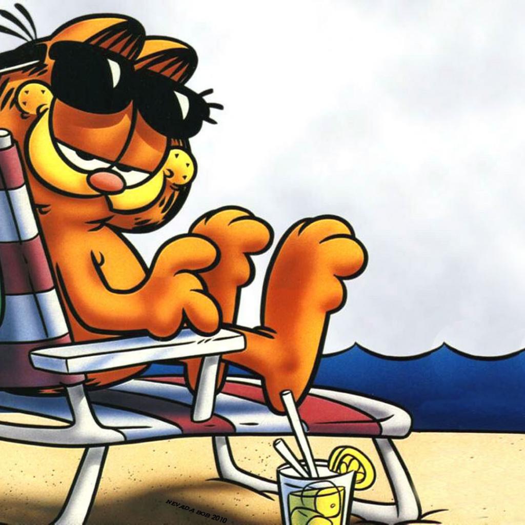 Wallpaper Garfield sunning on the beach