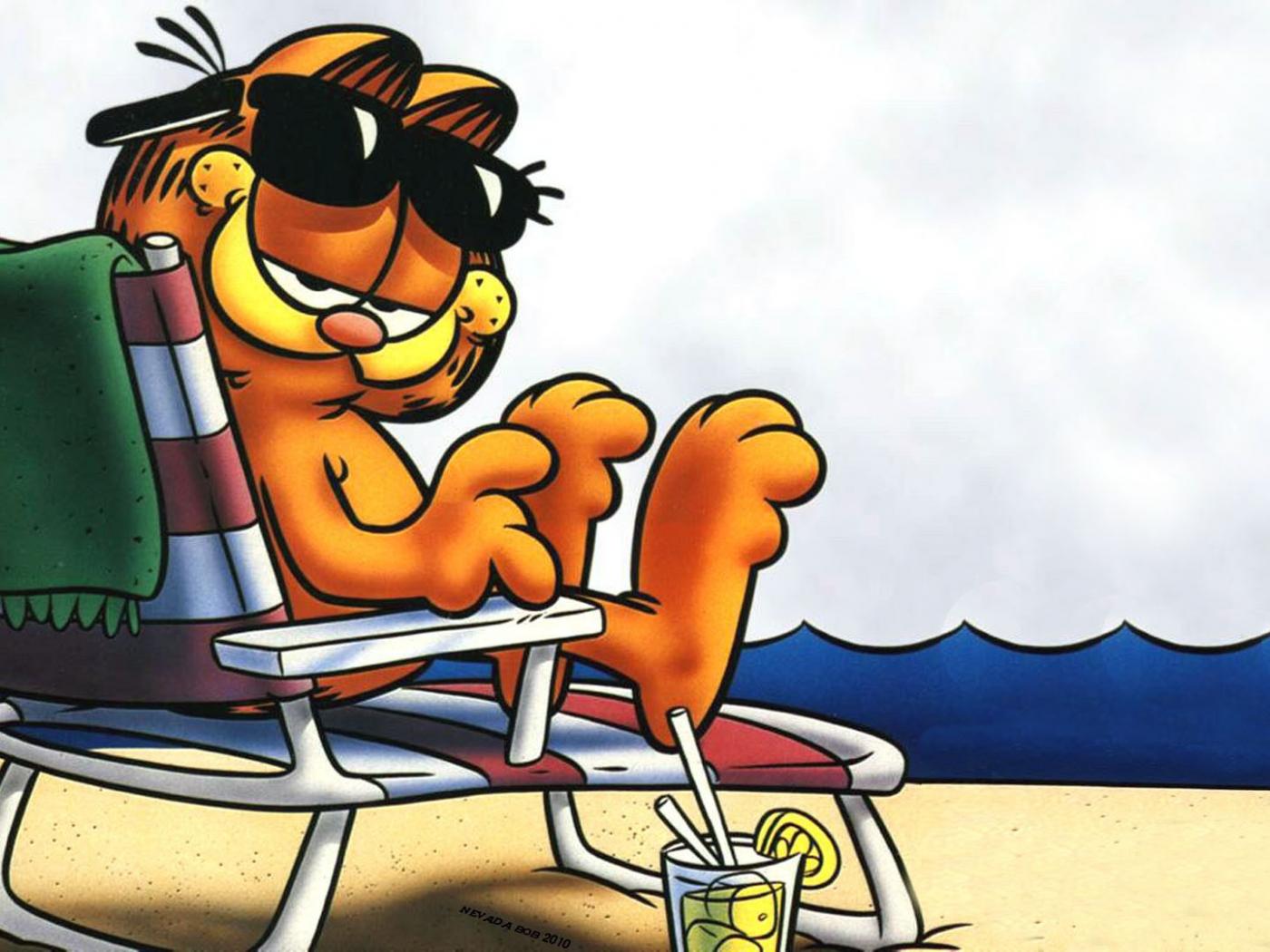 Wallpaper Garfield sunning on the beach