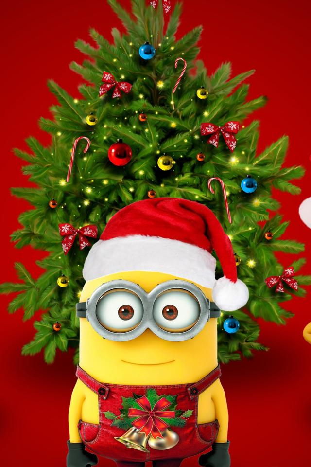 Wallpaper Minions have a Christmas tree