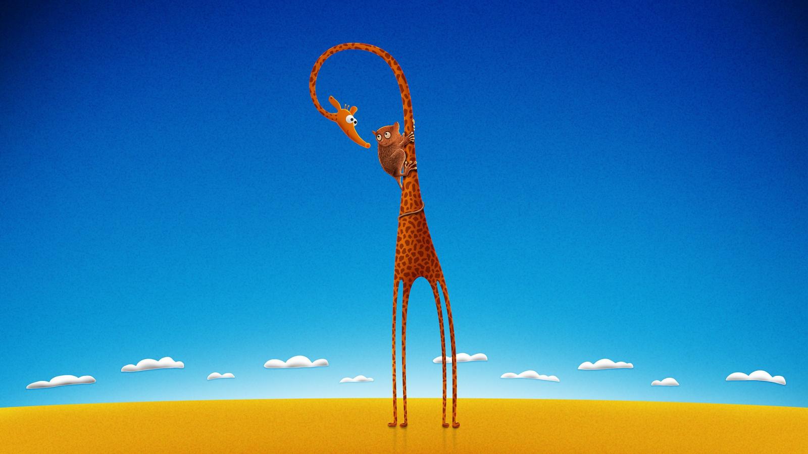 Wallpaper Lemur on the neck of a giraffe, cartoon