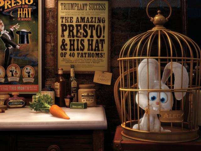 Wallpaper Sad rabbit in a cage, cartoon