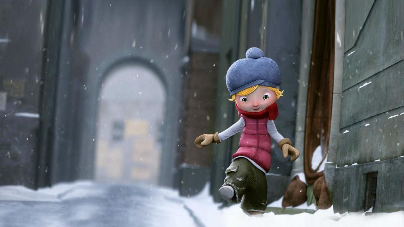 Wallpaper Girl walking on the snow, cartoon
