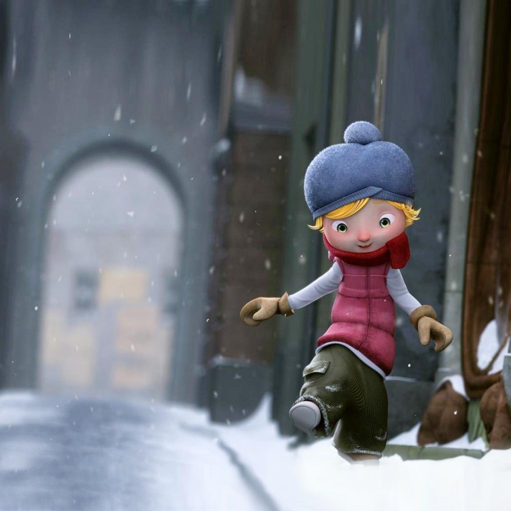 Wallpaper Girl walking on the snow, cartoon