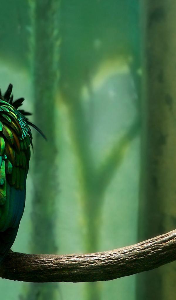 Wallpaper Green bird sitting back, cartoon