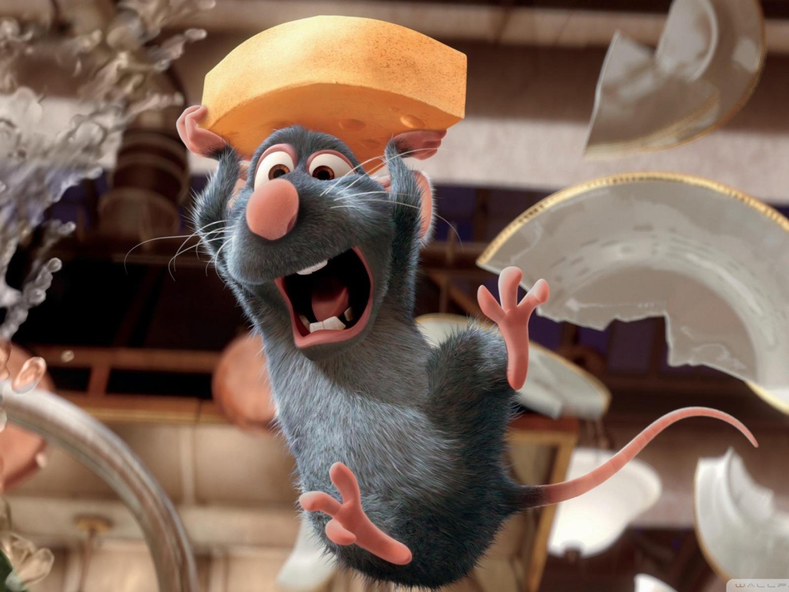 Wallpaper Rats with a piece of cheese, cartoon Ratatouille