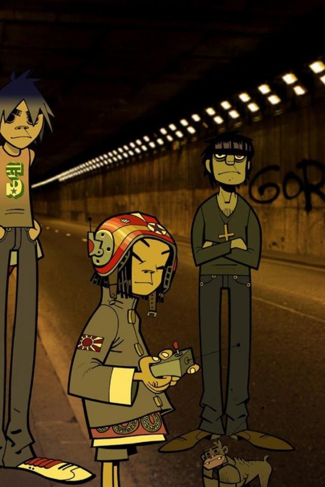 Wallpaper Gorillaz cartoon characters in the tunnel