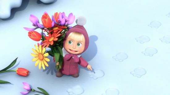 Wallpaper Masha with a bouquet of flowers, cartoon Masha and the Bear