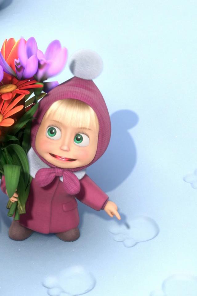 Wallpaper Masha with a bouquet of flowers, cartoon Masha and the Bear