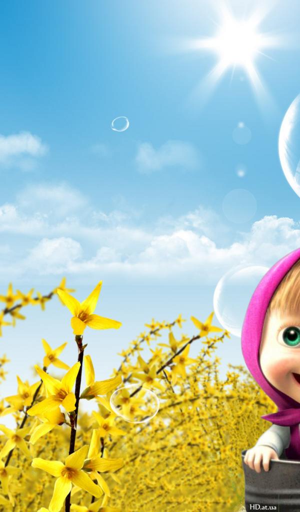 Wallpaper Masha against the blue sky, cartoon Masha and the Bear