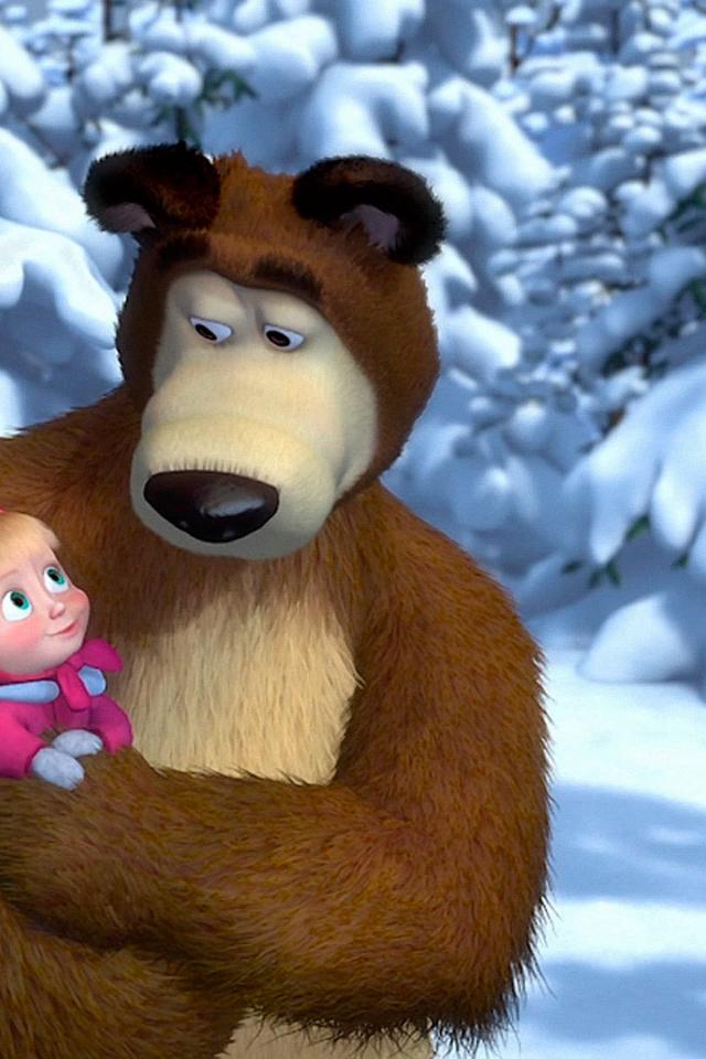 Wallpaper Masha in the hands of a bear, cartoon Masha and the Bear