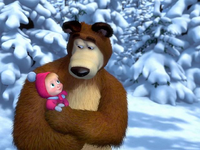 Wallpaper Masha in the hands of a bear, cartoon Masha and the Bear