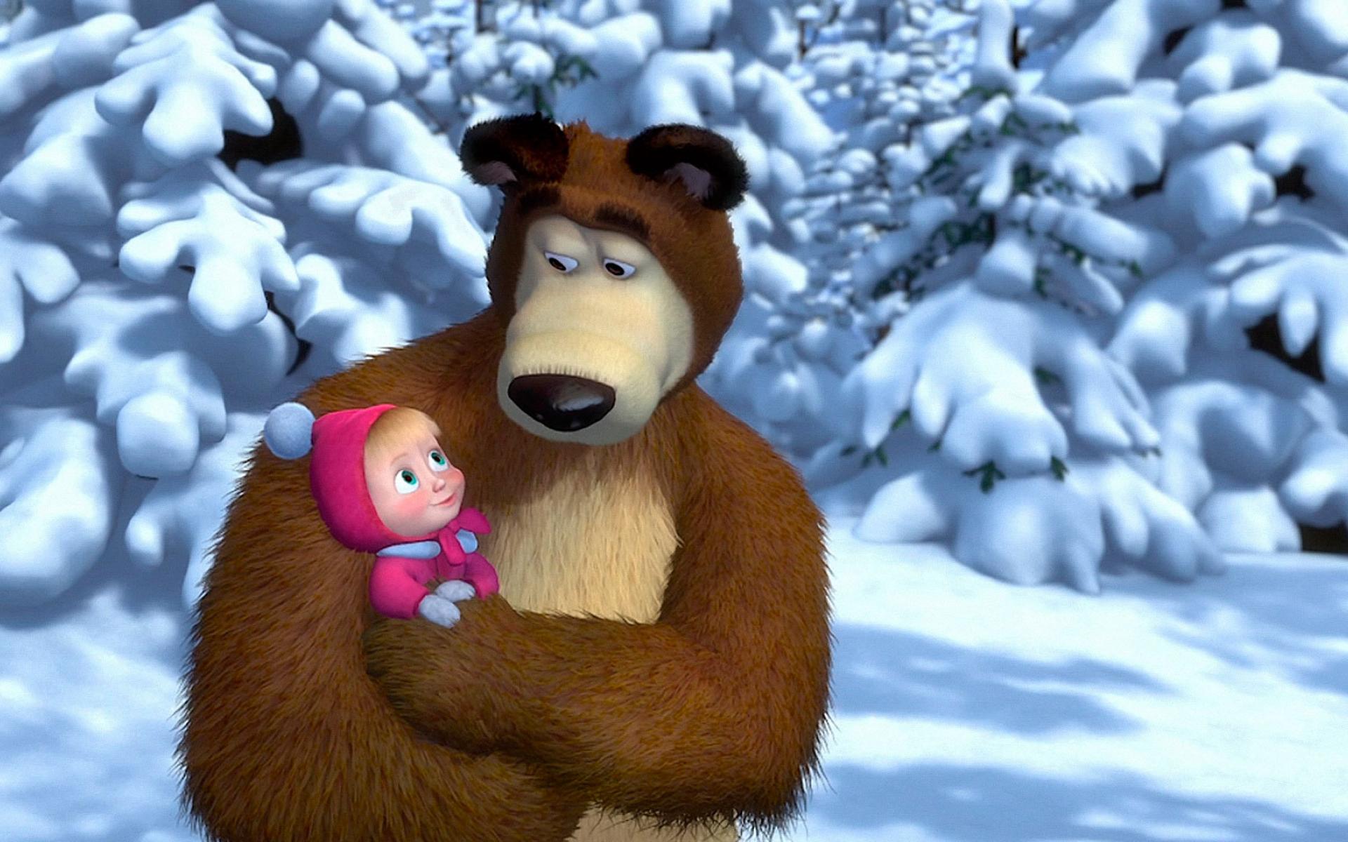 Wallpaper Masha in the hands of a bear, cartoon Masha and the Bear