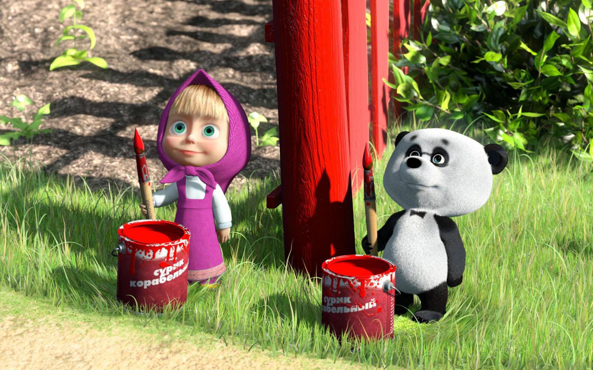 Wallpaper Masha paints a fence cartoon Masha and the Bear