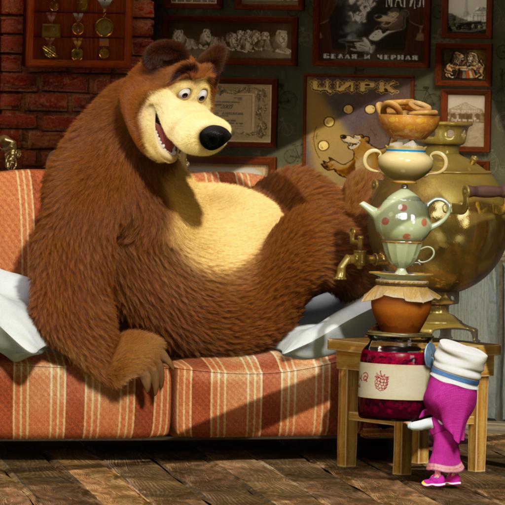 Wallpaper Masha calls bear tea, cartoon Masha and the Bear