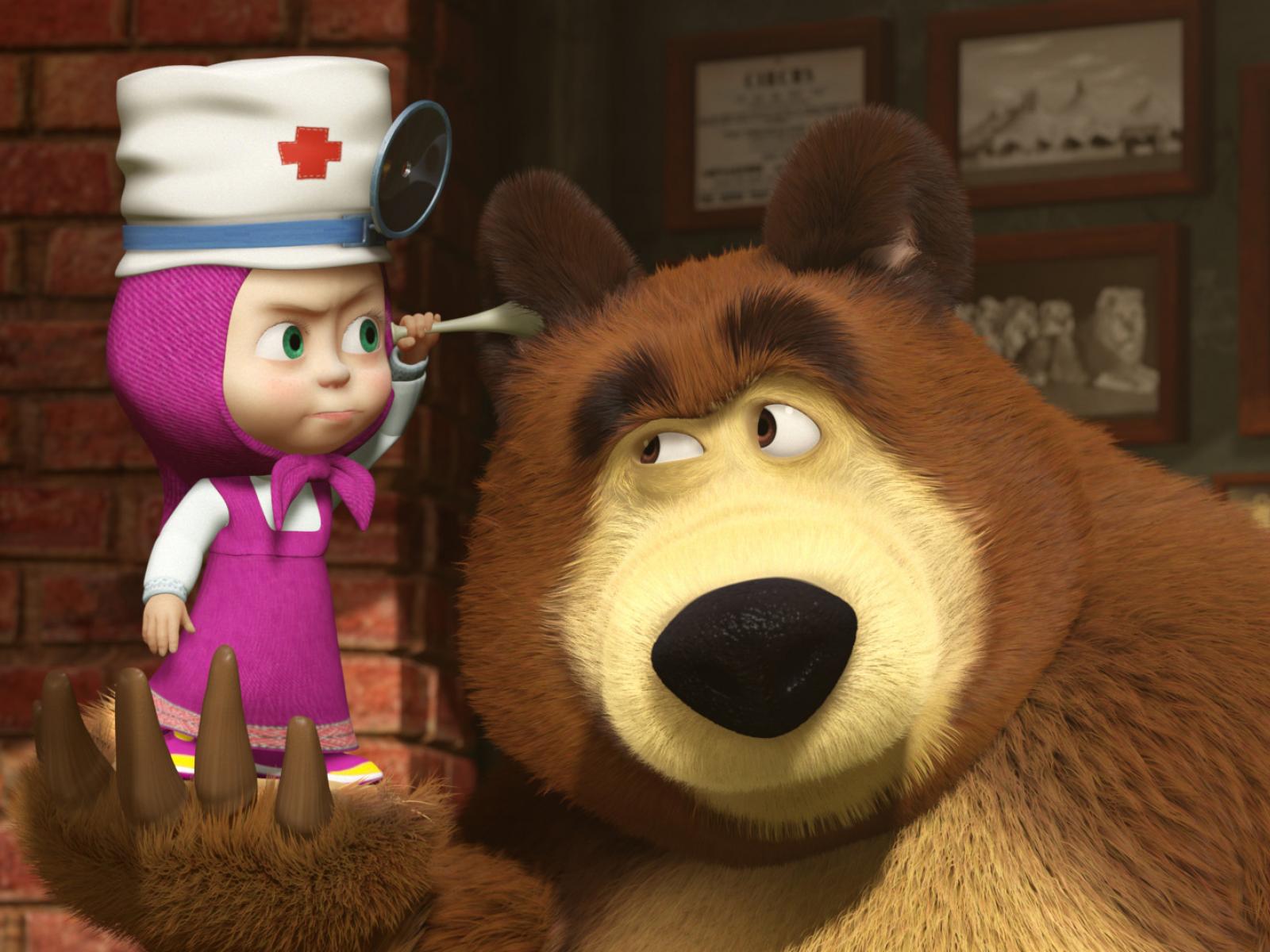 Wallpaper Masha in the role of the doctor, cartoon Masha and the Bear