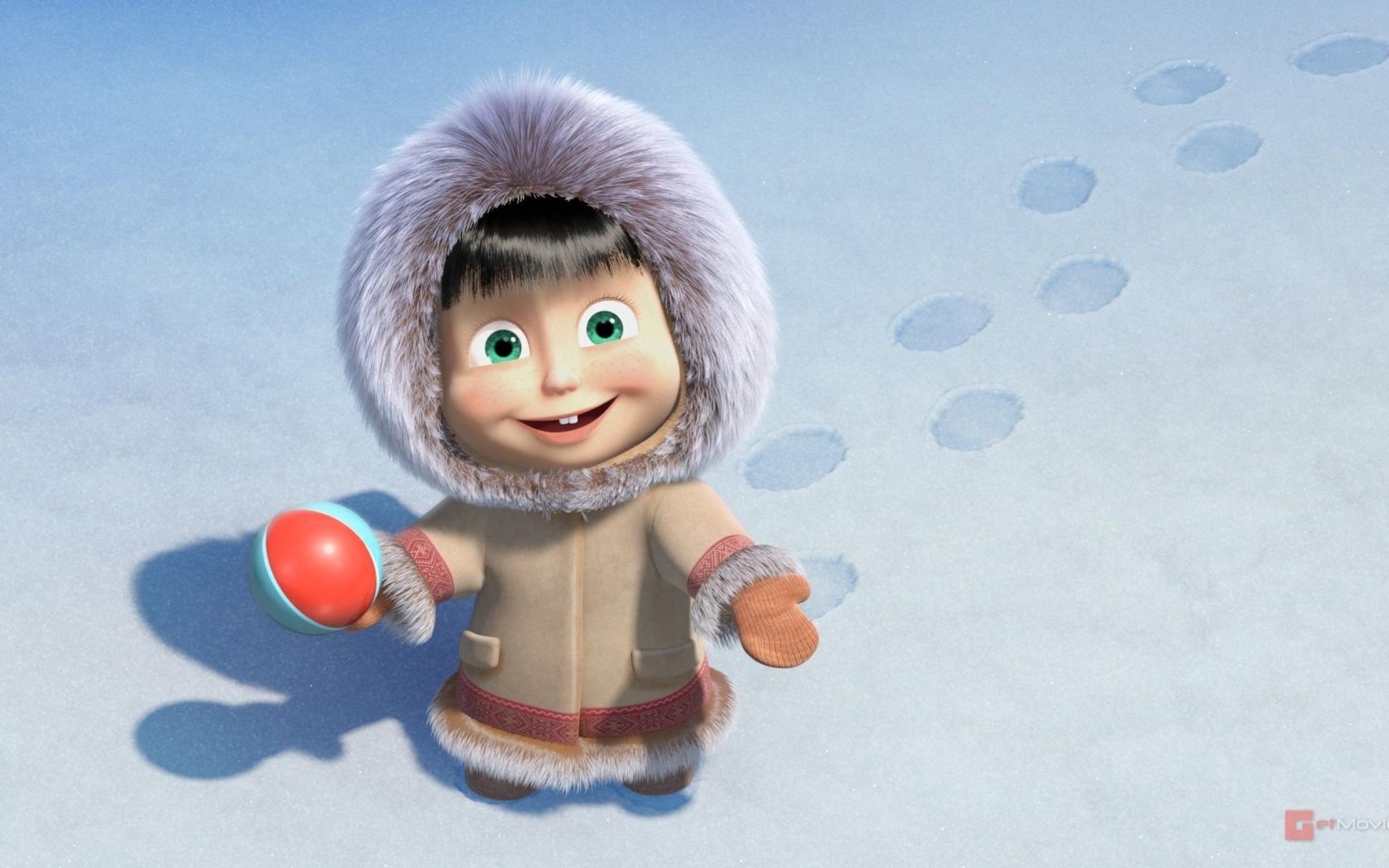 Wallpaper Masha dressed as an Eskimo, cartoon Masha and the Bear