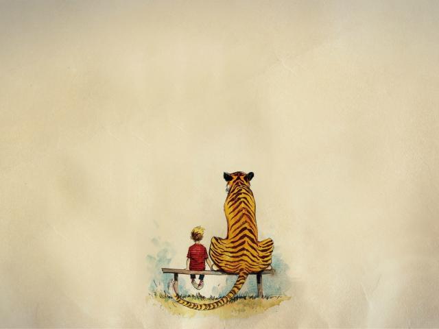 Wallpaper A boy and a tiger from Calvin and Hobbes comic strip