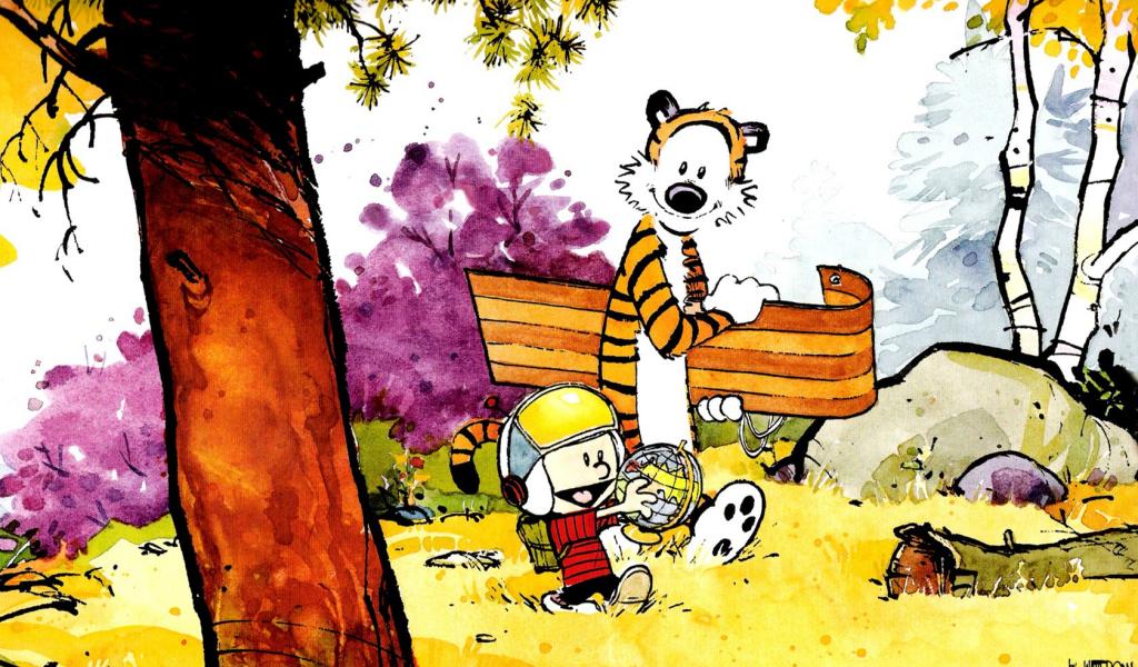Wallpaper Calvin and Hobbes go for a walk