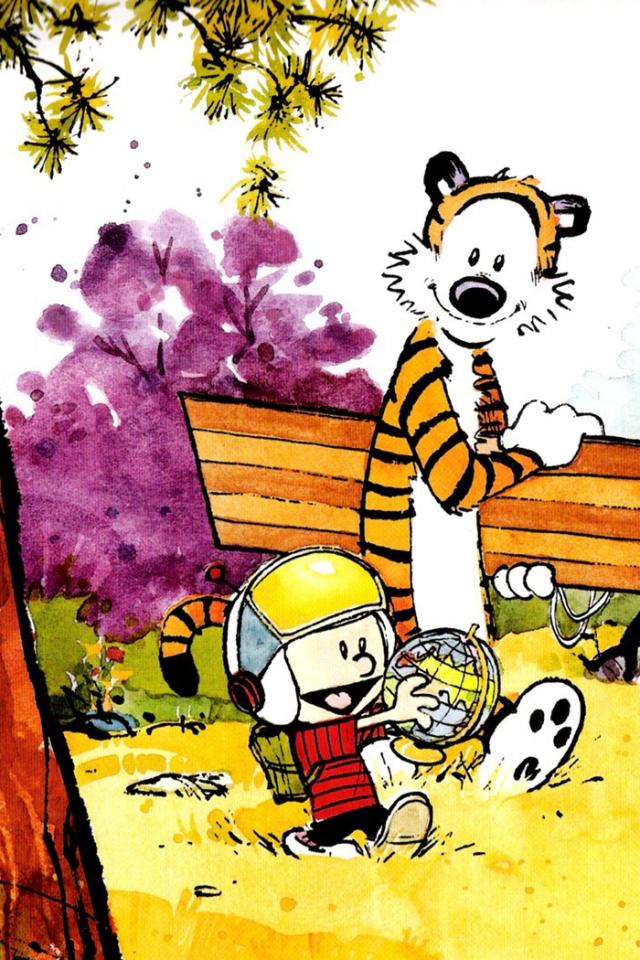 Wallpaper Calvin and Hobbes go for a walk