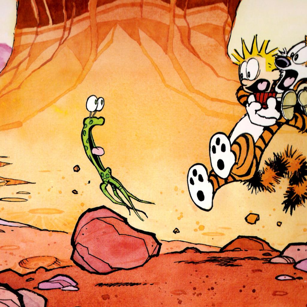 Wallpaper A boy and a tiger from Calvin and Hobbes comic strip