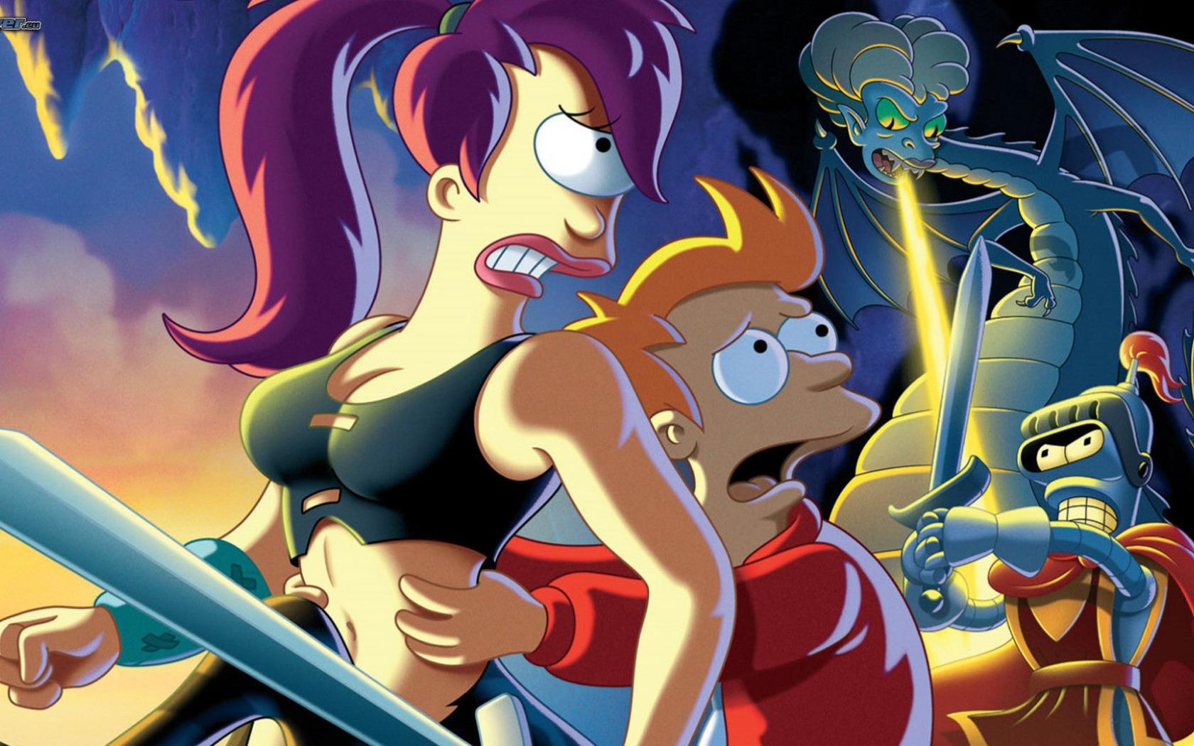 Wallpaper Futurama heroes battling with a monster