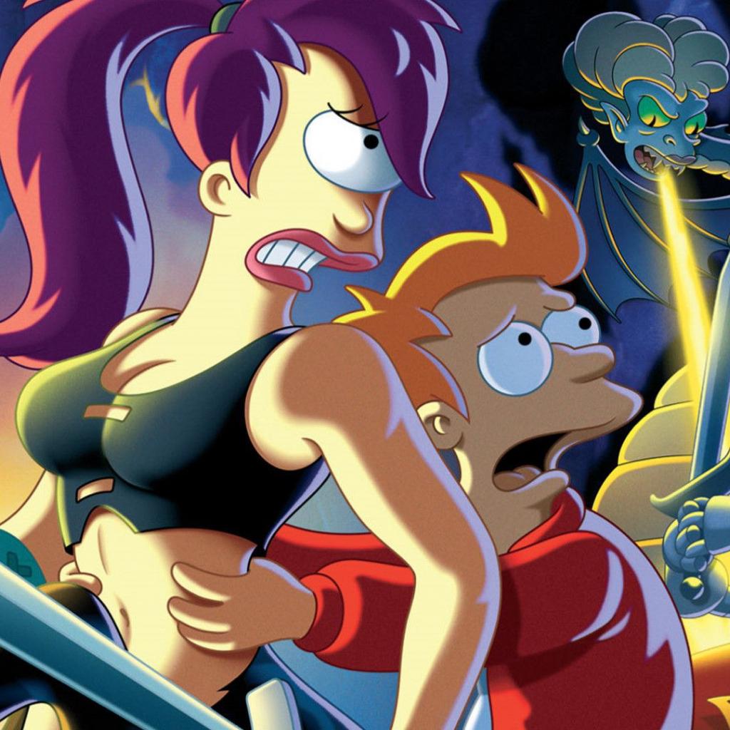 Wallpaper Futurama heroes battling with a monster