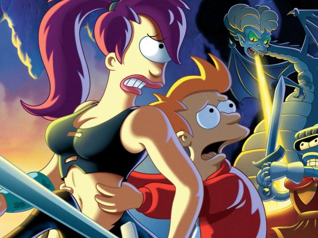 Wallpaper Futurama heroes battling with a monster