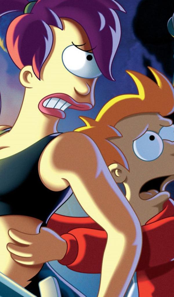 Wallpaper Futurama heroes battling with a monster
