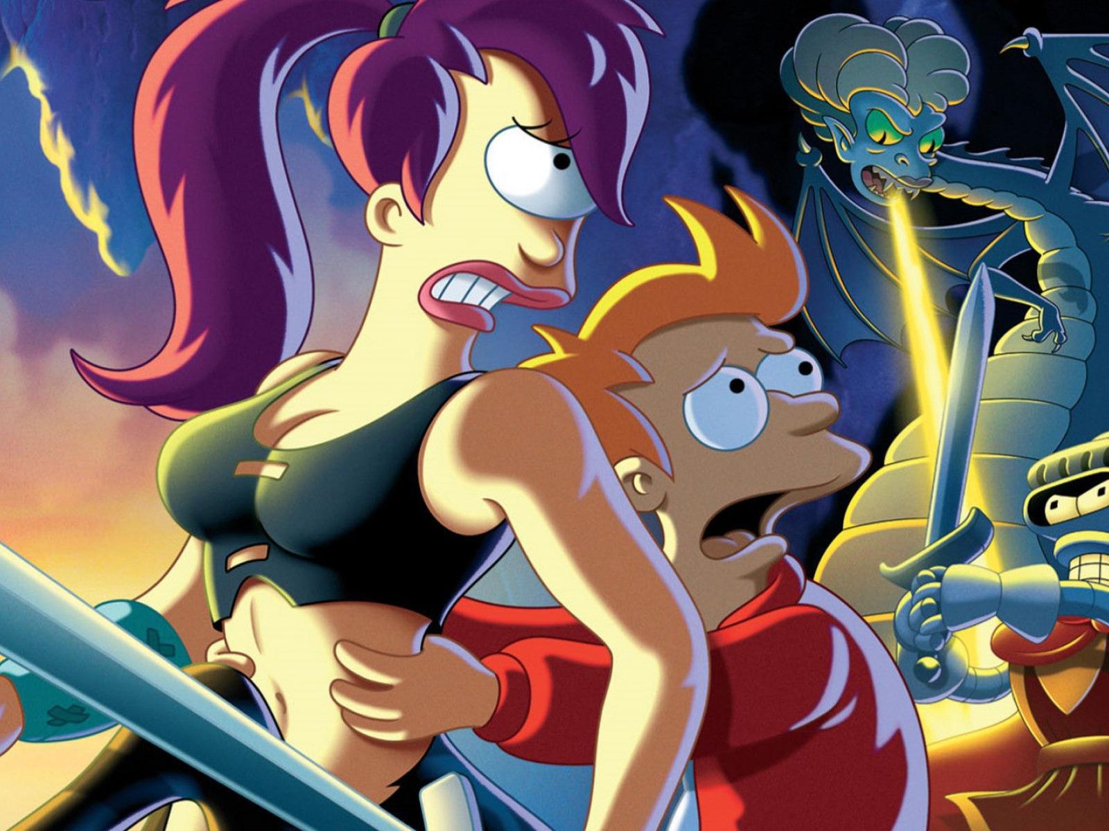 Wallpaper Futurama heroes battling with a monster