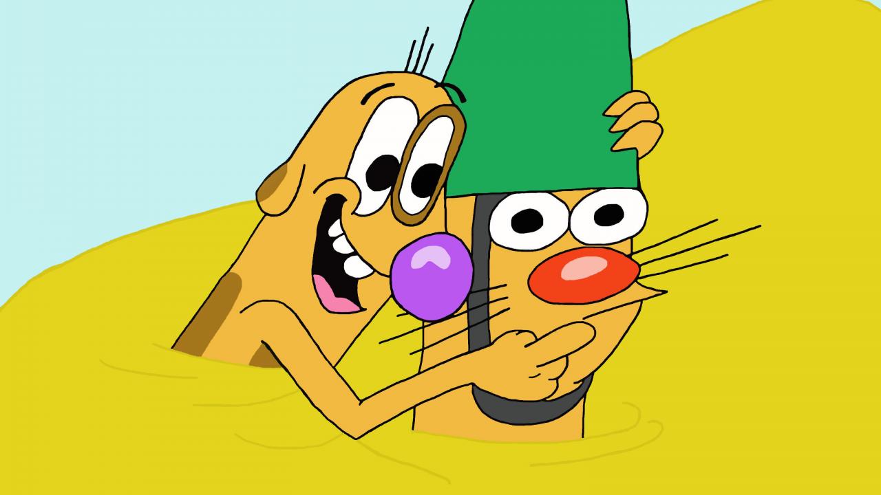 Wallpaper Catdog on a yellow background