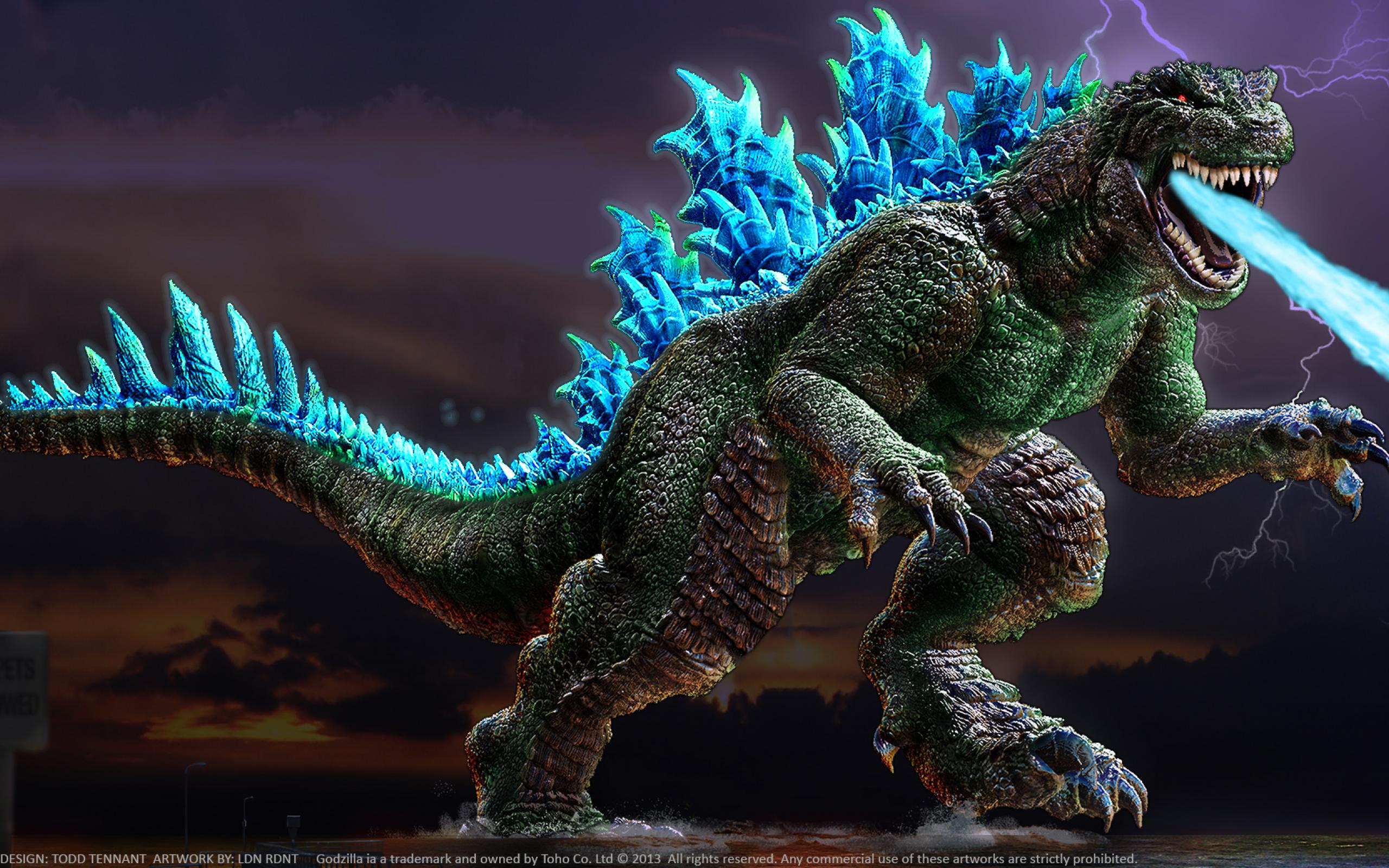 Wallpaper Godzilla spewing blue flames