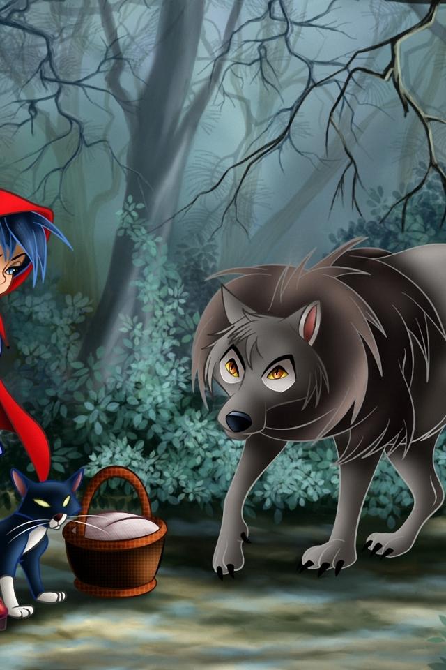 Wallpaper Wolf and Little Red Riding Hood