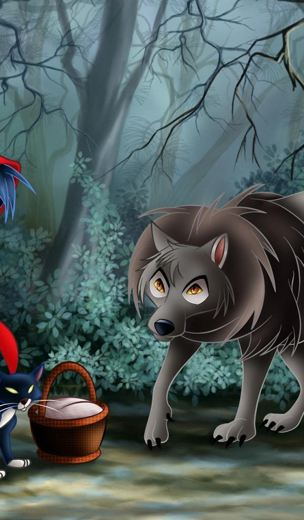 Wallpaper Wolf and Little Red Riding Hood