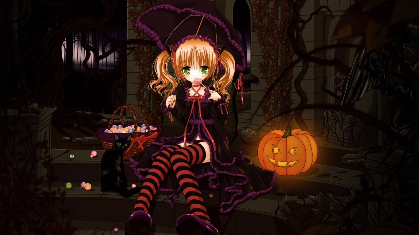 Wallpaper Night, Little girl, pumpkin