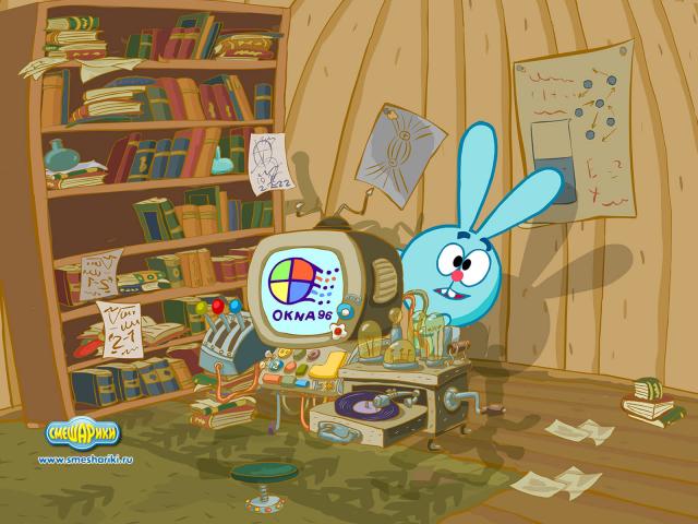 Wallpaper Крош с компьютером в мультфильме Смешарики
