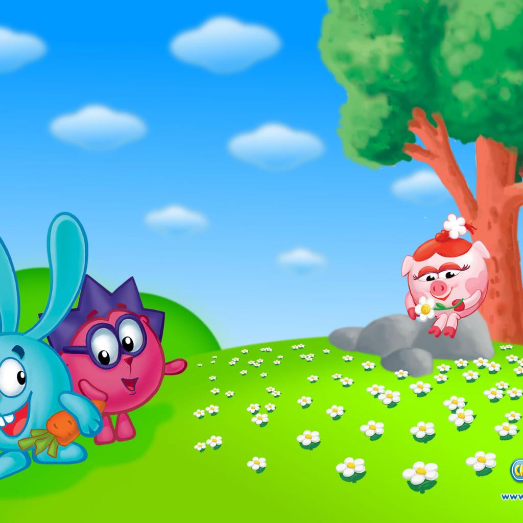 Wallpaper Nyusha picking flowers in the cartoon Kikoriki