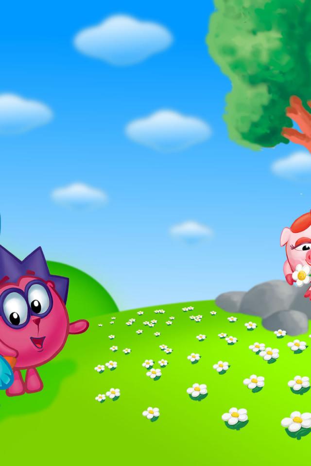 Wallpaper Nyusha picking flowers in the cartoon Kikoriki