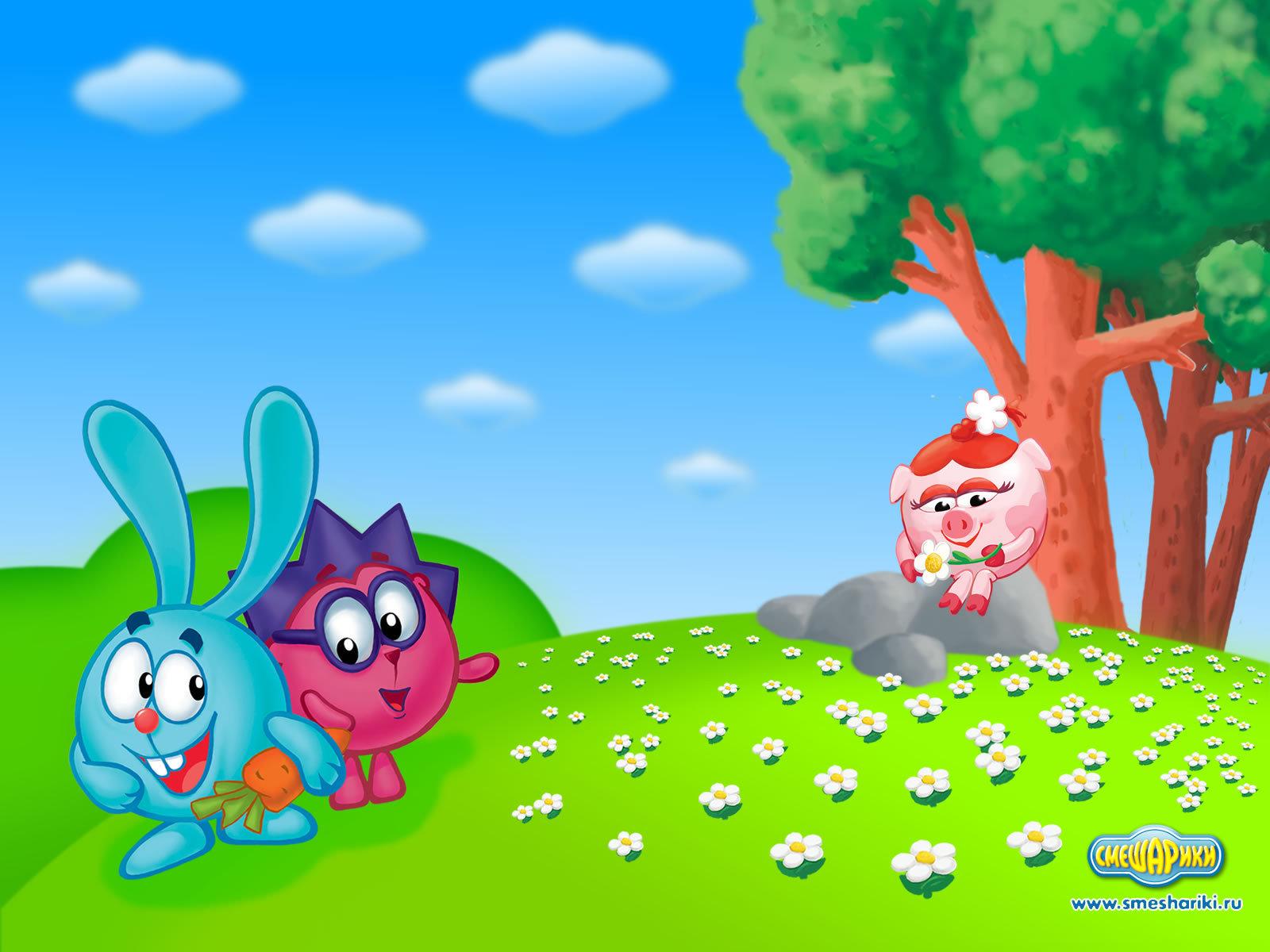 Wallpaper Nyusha picking flowers in the cartoon Kikoriki
