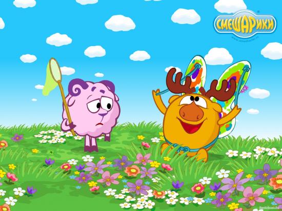 Wallpaper Nyusha and Losyash in the cartoon Kikoriki