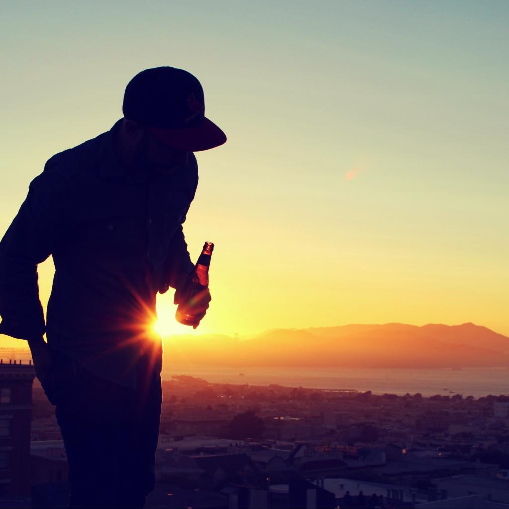 Wallpaper Glass of beer among the mountain caps from beer bottles