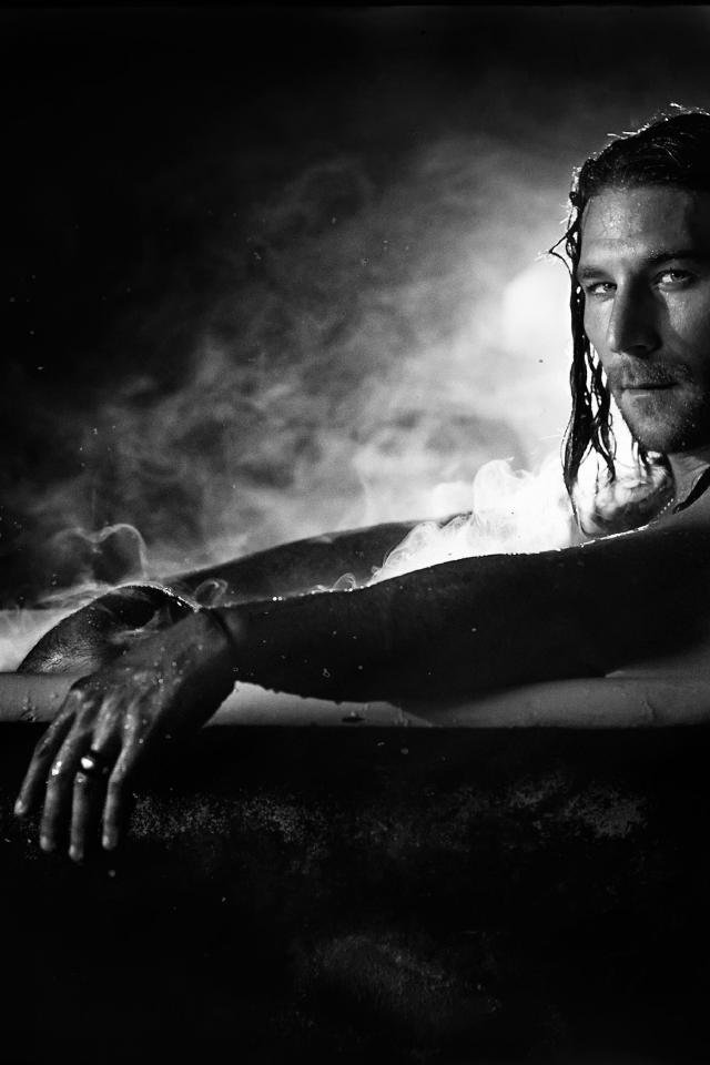 Wallpaper A man takes a hot bath
