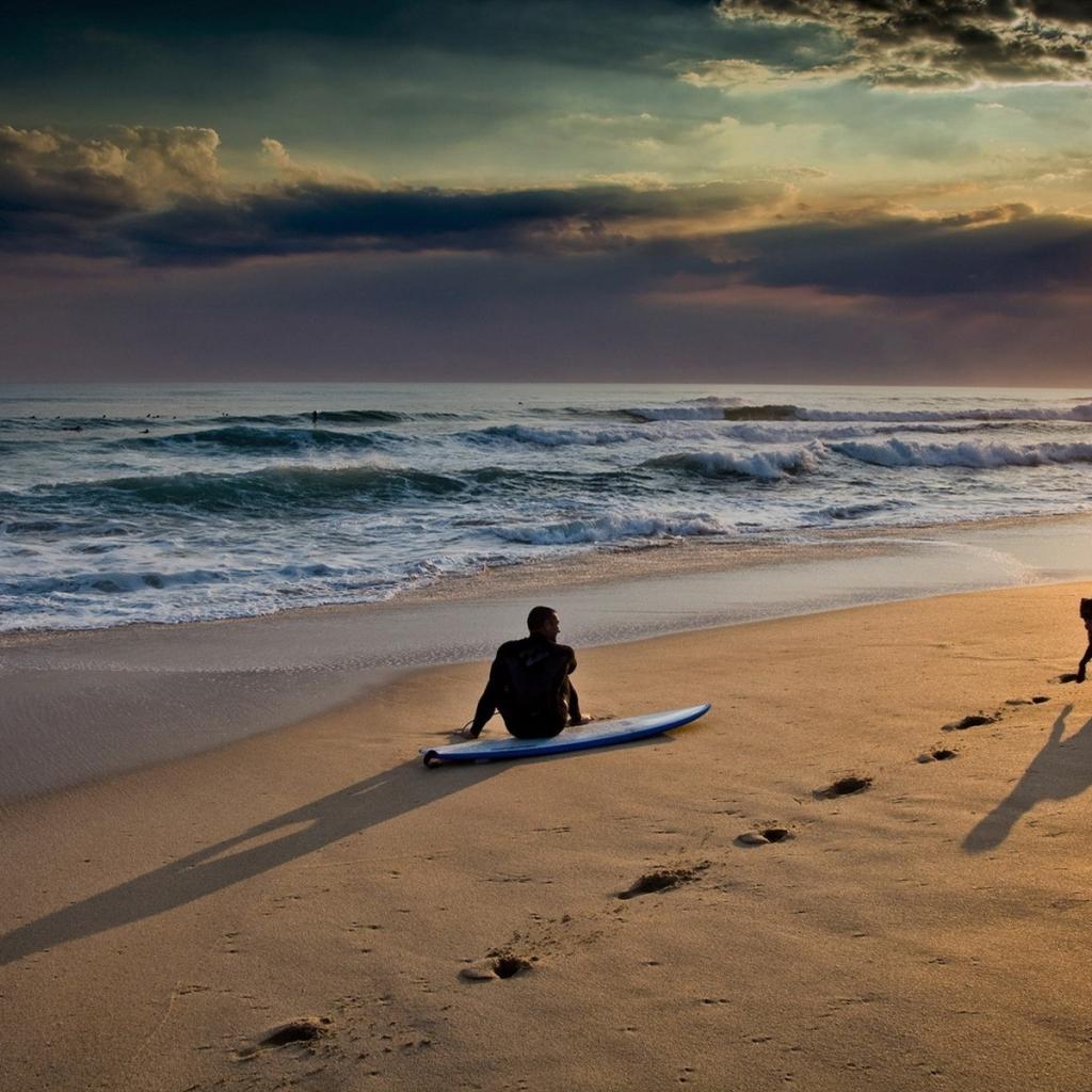 Wallpaper Surfer with his dog on the beach