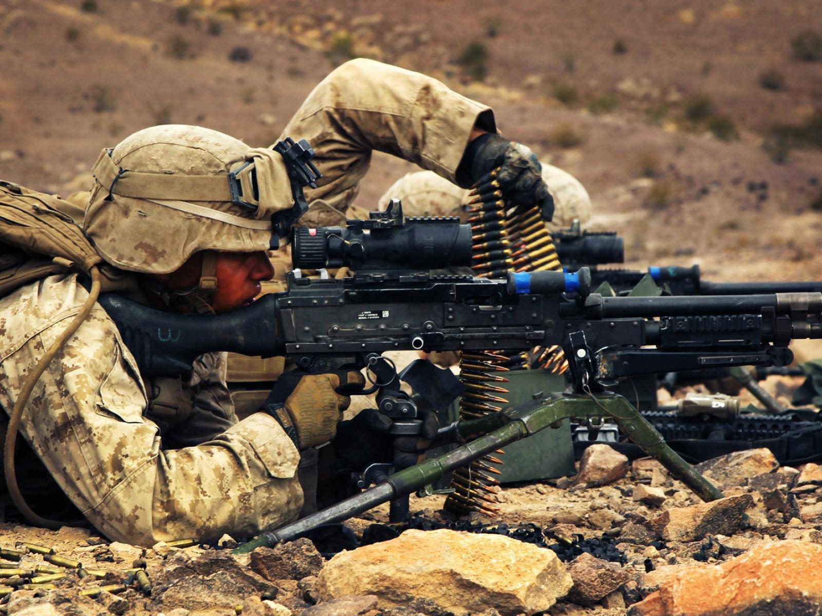 Wallpaper The soldier fires his machine gun