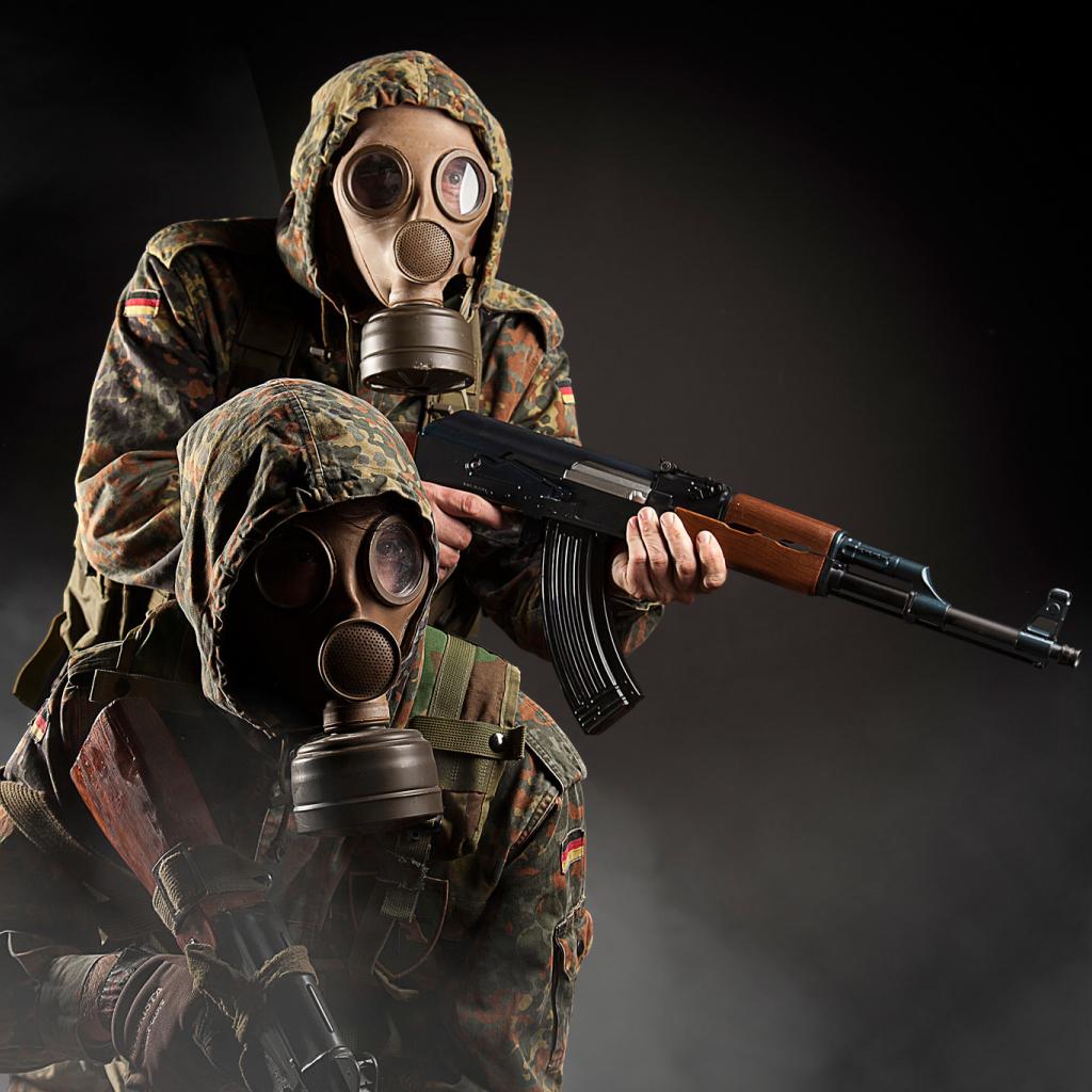 Wallpaper Soldiers in masks Chemical Protection