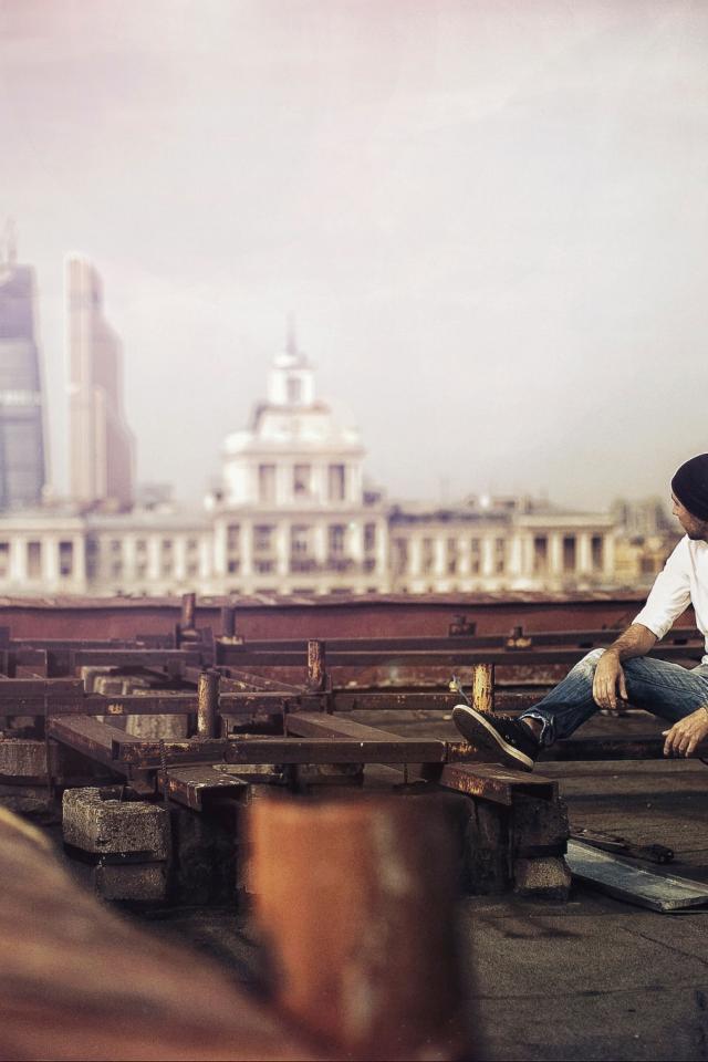 Wallpaper The guy looks at the city