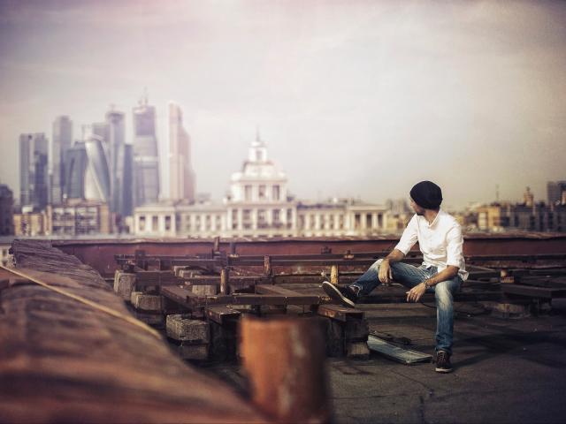 Wallpaper The guy looks at the city