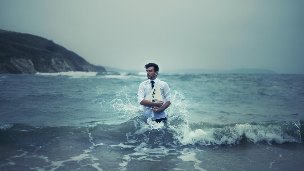 Wallpaper Man with ship in the sea