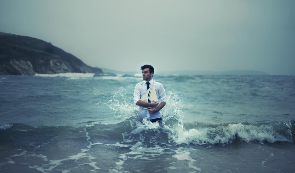 Wallpaper Man with ship in the sea