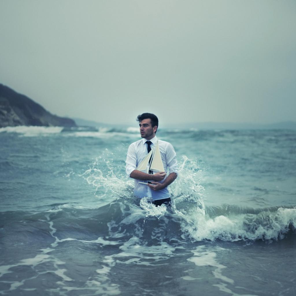 Wallpaper Man with ship in the sea